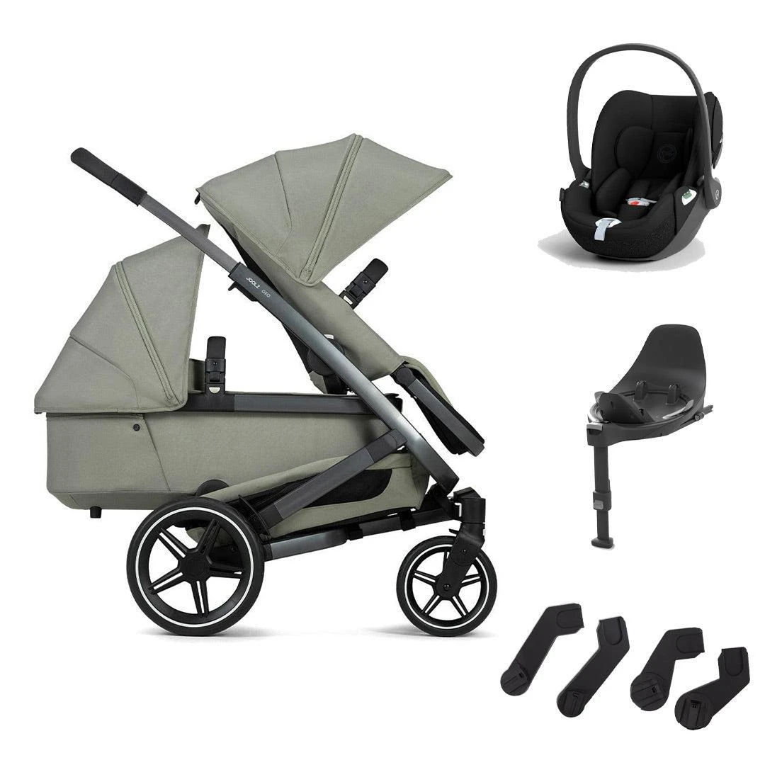 The Joolz Geo3 Pushchair + Cloud T Duo Travel System in Sage Green has everything you need to take your little ones out from birth. Including the complete Duo stroller with a seat and a carrycot, the CYBEX Cloud T car seat with the option of a matching base and the Car Seat Adapters in Upper and Lower.