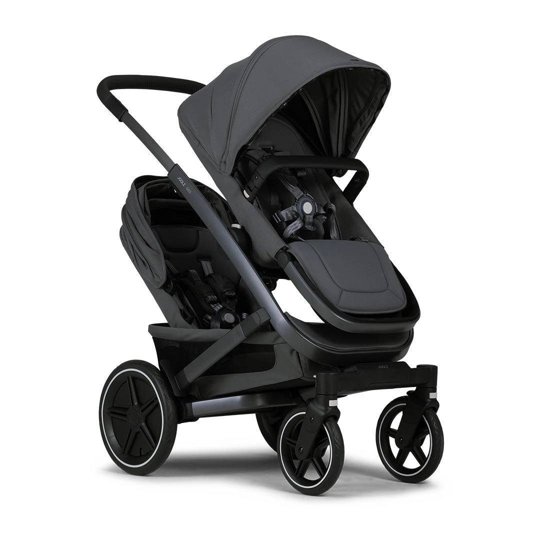 The Geo3 Twin Pushchair easily takes you from the great outdoors to a cobblestone street from day one with two little ones. With all-season protection in the cot and seat, as well as puncture-proof wheels, this pushchair is ready for any adventure while your family grows. This pushchair makes light work of small spaces and narrow aisles, while both babies enjoy full-sized comfort. You can continue cruising through urban streets or rocky terrain. Whatever takes your fancy, everyone will be protected, ventilated and safe from the elements. This adaptable pushchair has a reversible seat that adjusts to every situation and includes a 5-point adjustable harness. You’ll be prepared for anything mother nature can throw at you with an all-weather, extendable, water-repellent, UFP50+ sun hood. This versatile pushchair is suitable for two little ones of the same age, from birth up to toddlerhood. With its easy Upper and Lower adapters, you can go from using two carrycots one on the Upper adapter and one on the Lower adapter to two seats with ease, making it ideal for growing babies.